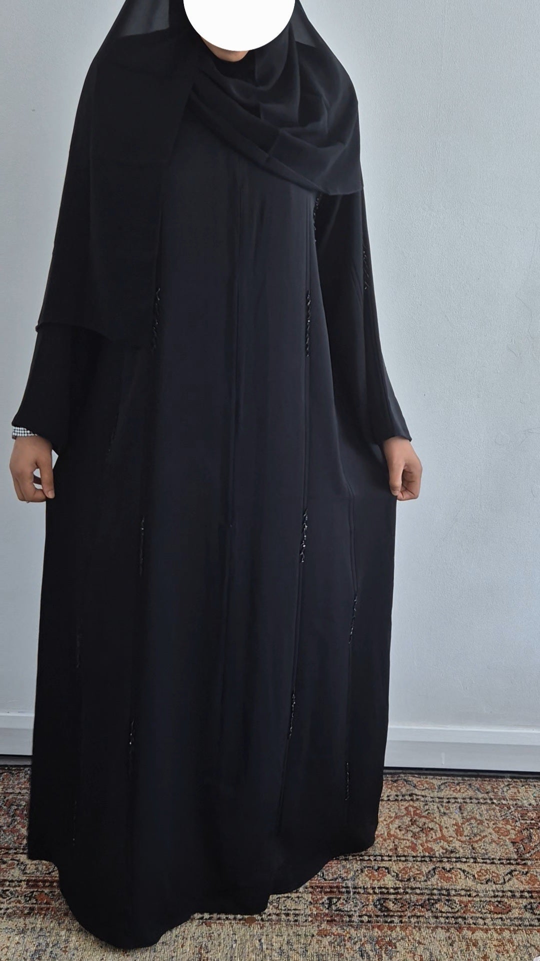 Timeless sophistication meets effortless modesty in the Noir Abaya. Designed with a sleek, straight-cut silhouette, this open abaya features a full-length button closure, offering versatility in styling. Made from premium fabric, it drapes elegantly while ensuring comfort and coverage. Whether worn casually or for an occasion, Noir embodies refined simplicity with a touch of grace.